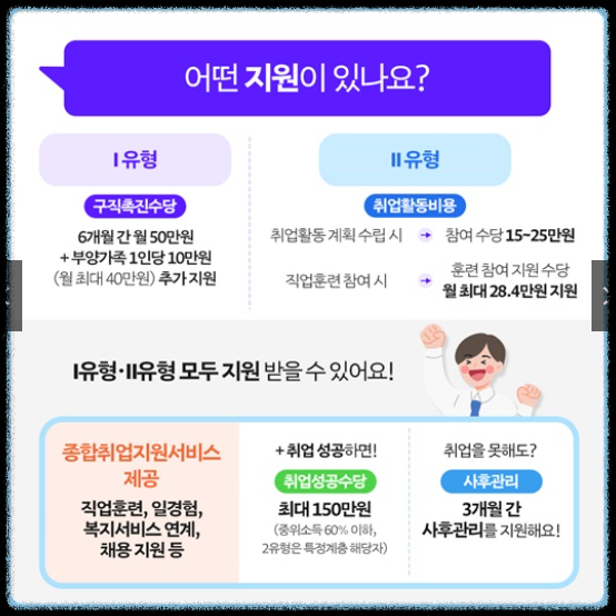또한 취업 성공 시 최대 150만 원의 취업성공수당도 지급되어 구직 동기를 높여 줍니다.