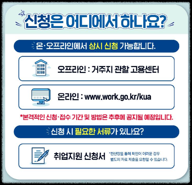 국민취업지원제도 신청을 준비하는 분들은 위 사항들을 꼼꼼히 확인해 불필요한 일을 예방하시기 바랍니다.